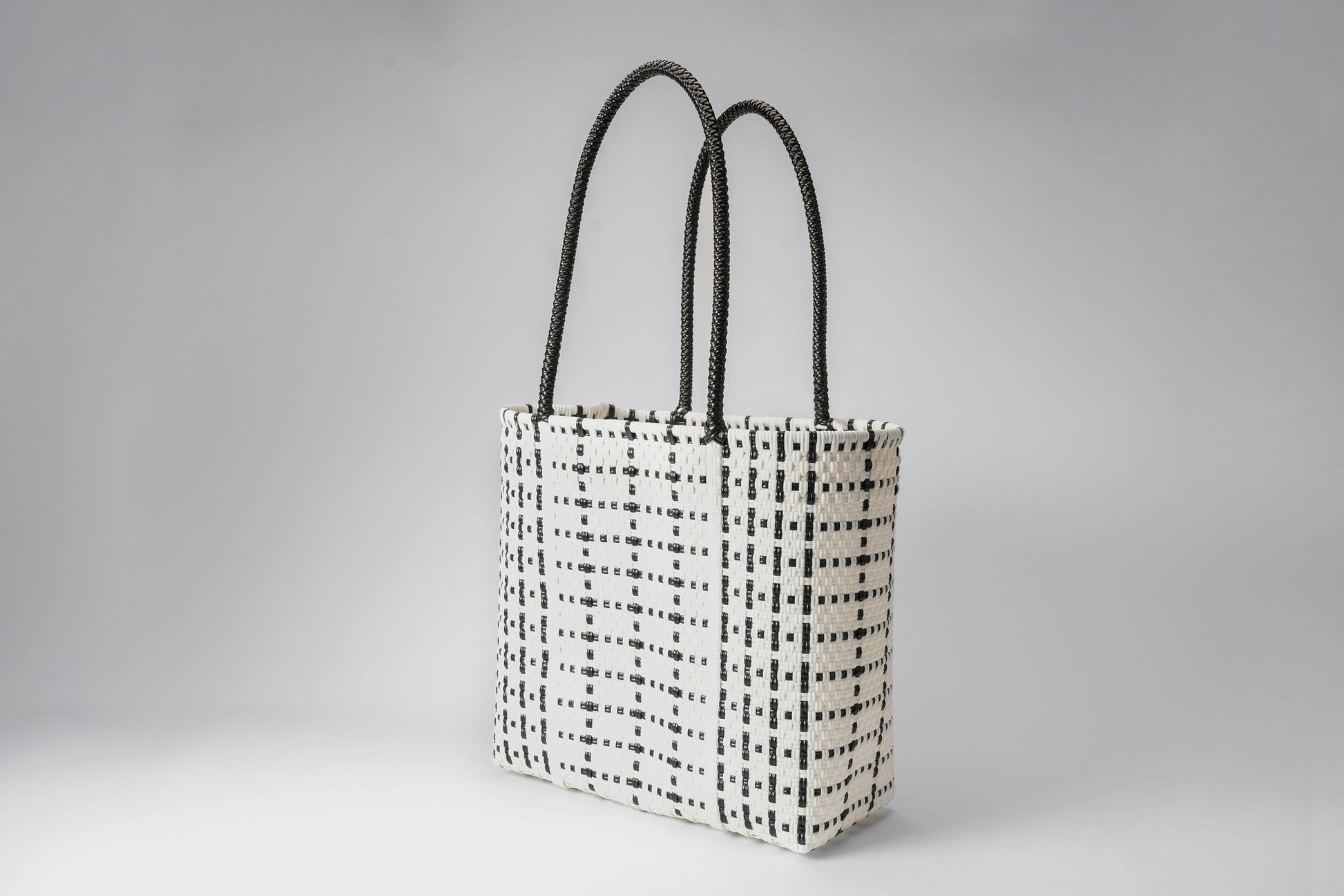 Medium tote bag made of recycled plastic by Mexican artisans. This handmade piece is one-of-a-kind, with colors carefully selected to elevate your style.